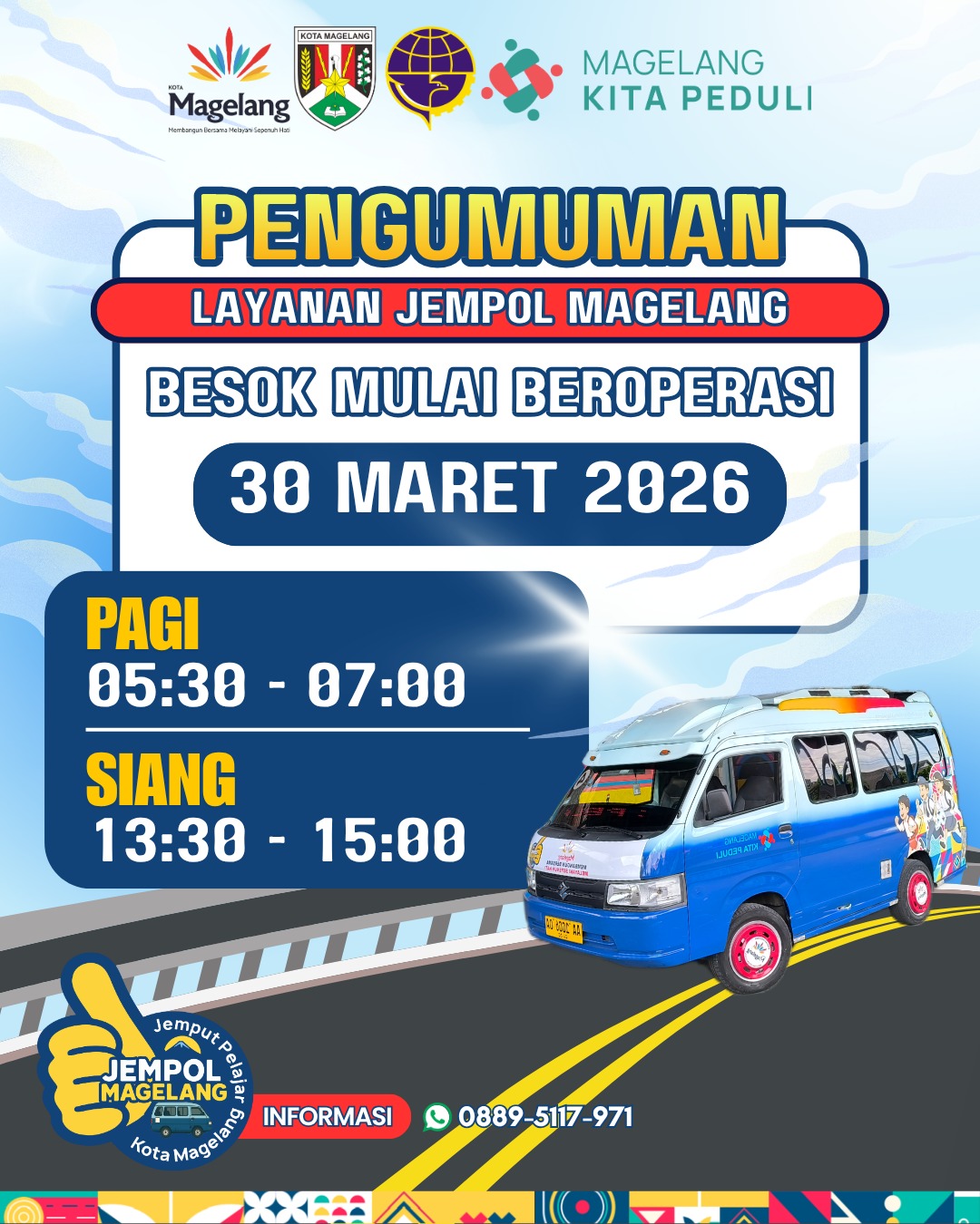 Program Pelayanan Jemput Pelajar Kota Magelang (JEMPOL) 2026 Mulai beroperasi kembali Per 30 Maret 2026. Ayo para pelajar manfaatkan progam ini dengan sebaik-baiknya.