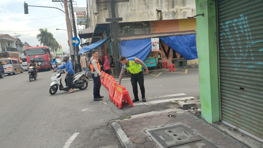 Petugas ditempatkan untuk melakukan pengaturan lalu lintas, pengalihan arus, serta memberikan informasi kepada pengguna jalan secara langsung.